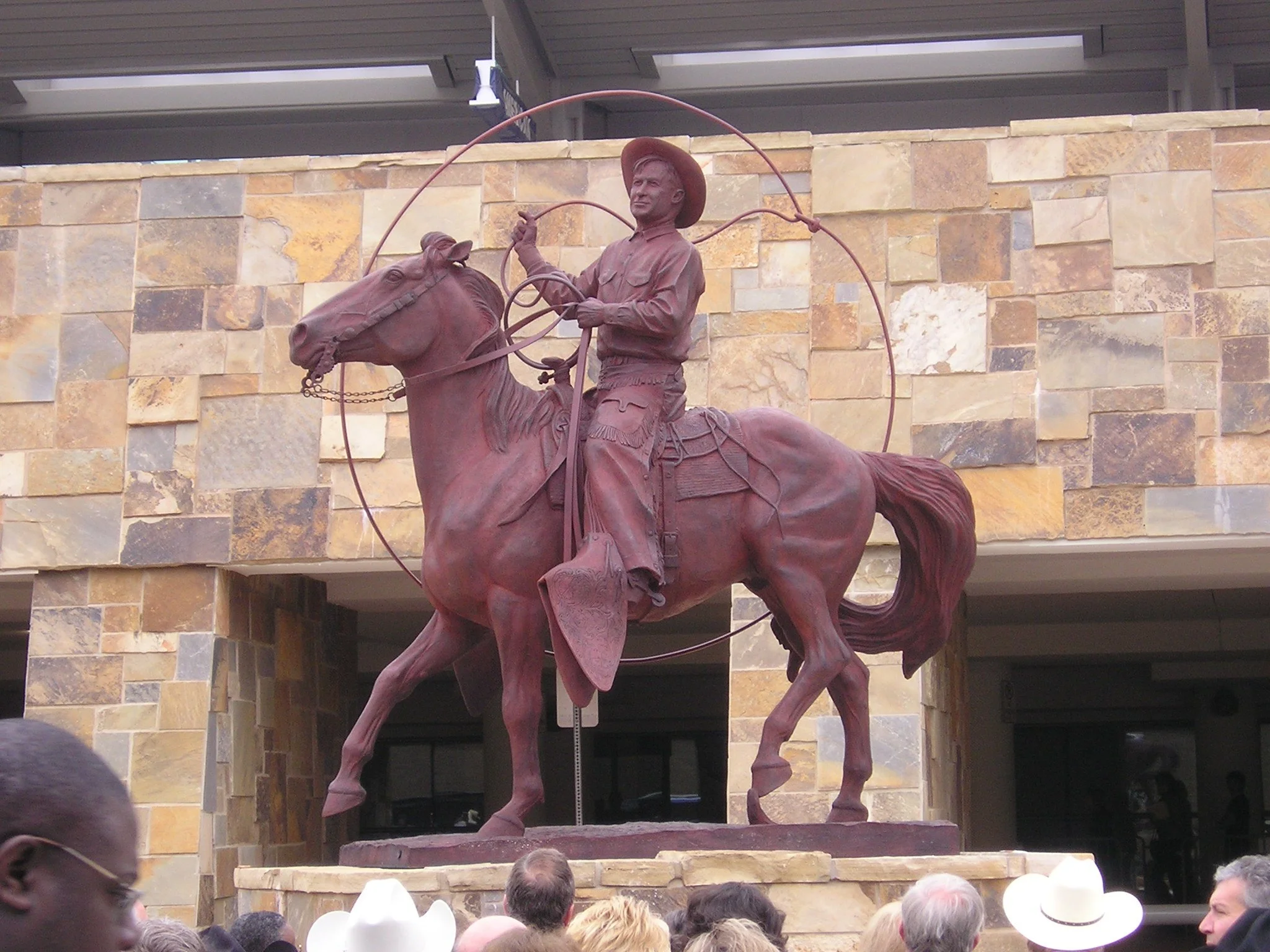 This monument was first a maquette which is still given every year to the rancher selected as the National Golden Spur Award winner.